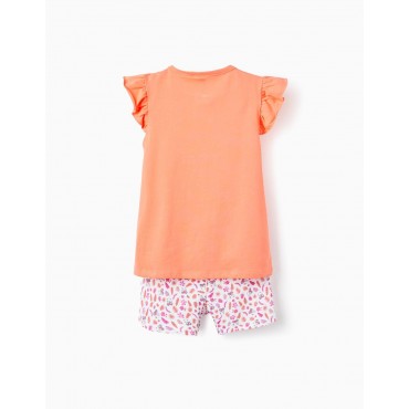 Pigiama due pezzi per bambina, 100% cotone. T-shirt arancione a maniche corte con maniche arricciate. Stampa frontale di Minnie Mouse in stile hawaiano. Piccoli dettagli a fiocco sul colletto e bottoni a pressione sulla spalla per facilitare la vestizione. Copripannolino bianco fantasia Minnie multicolore. Cintura e orli elastici per una migliore vestibilità. Orli rifiniti ondulati per un tocco più fluido. Un set leggero e adorabile, perfetto per far stare comodi i piccoli fan di Minnie nelle giornate soleggiate!
