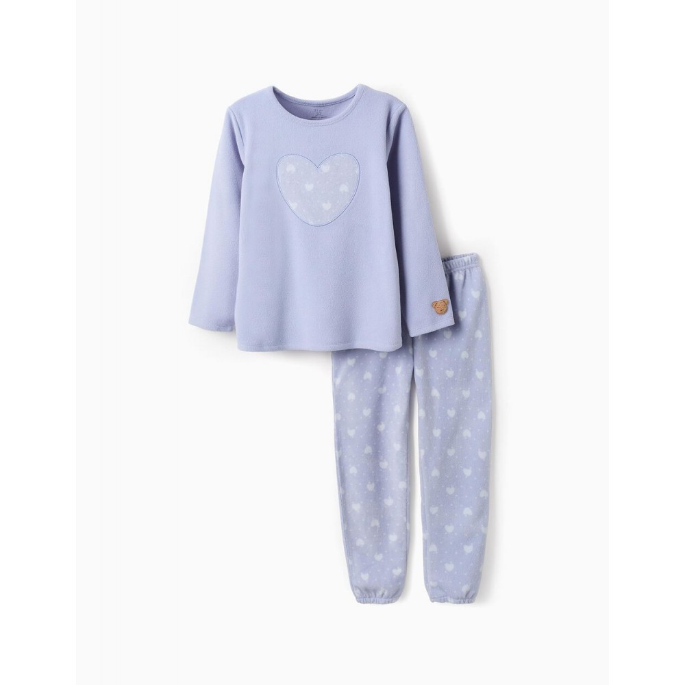 Pigiama lilla polare per bambine. Top con cuore in rilievo. Pantaloni con fantasia, con elastico in vita e orli per una vestibilità perfetta. Etichette interne stampate per non irritare la pelle. Con cucciolo in rilievo sul polso, in modo che i bambini non si sentano mai soli di notte, favorendo la loro autonomia. Un pigiama caldo, morbido e confortevole, perfetto per le notti più fredde.