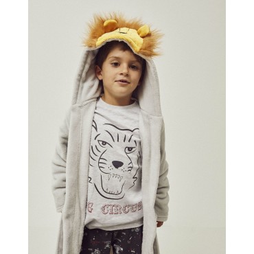 Vestaglia per bambino in pile grigio polare, in morbido e confortevole materiale soffice. Cappuccio con dettagli leoni, con orecchiette e criniera 3D. Due tasche frontali. Cintura integrata. Calda e morbida, questa vestaglia è l'opzione ideale per mantenere i tuoi bambini caldi e comodi durante l'inverno.