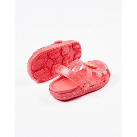 Sandali corallo per neonata, flessibili e molto comodi, con brillantini. Applicazione sole in gomma sulla parte superiore. Cinturino mobile, quindi può essere utilizzato come sandali. Sottopiede dalla forma esclusiva, estraibile e lavabile. Suole antiscivolo. Linea speciale di scarpe 'ZY Delicious', con elementi profumati.