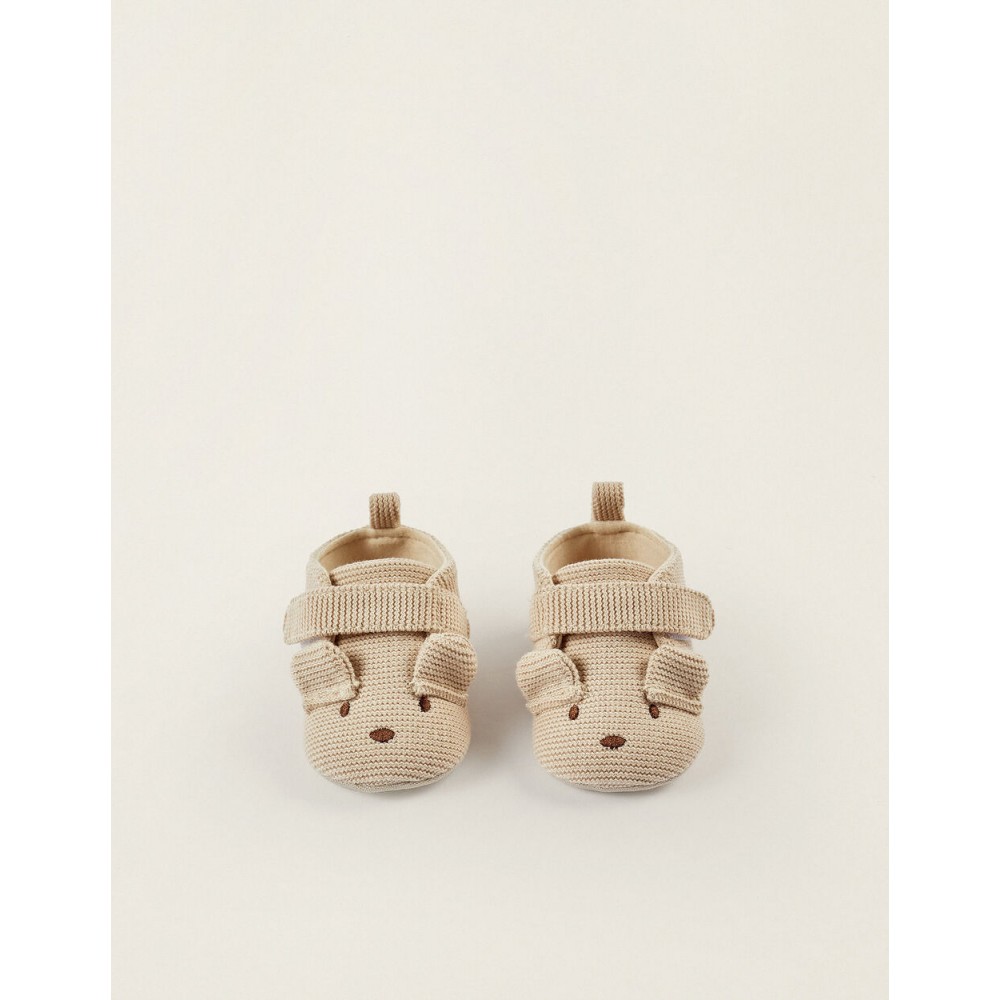 Scarpe in maglia beige per neonati. Si chiude con cinturino adesivo per indossarlo e regolarlo facilmente. Orecchie 3D nella parte anteriore. Interni in tessuto per un maggiore comfort. Suola flessibile. Calzature pratiche, comode e adorabili per il primo anno di vita.