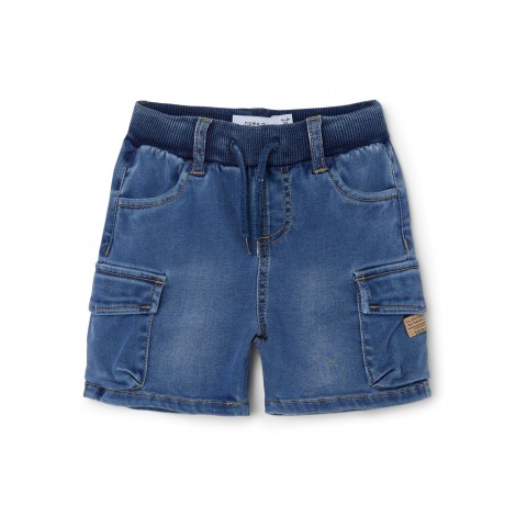 Jeans corto bambino Name it modello cargo morbido, elastico regoal vita interno