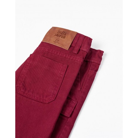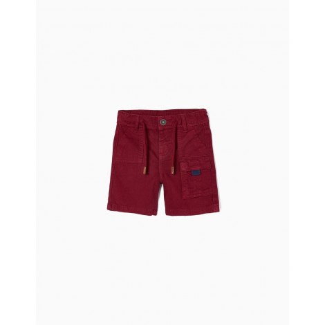 Pantaloncino bordeaux per neonato, 100% cotone. Due tasche laterali e posteriori. Tasca frontale con chiusura a strappo. Chiusura frontale con coulisse e bottoni a pressione per una vestibilità perfetta. Vita regolabile all'interno con elastico e bottoni. Un paio di pantaloncini comodi e ideali per ogni occasione. We Care: Articolo con certificato Oeko-Tex Standard 100, che garantisce l'assenza di sostanze nocive o irritanti per la pelle.