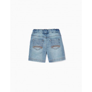 Shorts in denim celeste per neonato, in misto cotone. Cintura con coulisse a contrasto. Regolabile all'interno con bottoni ed elastici. Orlo risvoltato. Cinque tasche. Un pezzo senza tempo ed essenziale per qualsiasi look. Un capo della collezione Mix & Match, che permette infinite combinazioni di pezzi e look.