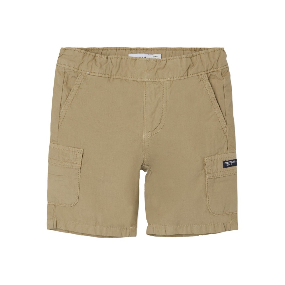 Pantaloncini bambino Name it beige modello cargo, in cotone, elastico regola vita interno