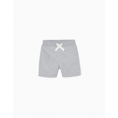 Pantaloncino sportivo grigio per neonato, in jersey di misto cotone. Vita elasticizzata e a costine, con coulisse regolabile per un maggiore comfort. Tasche laterali. Un capo comodo e casual, indispensabile per l'estate. We Care: Articolo con certificato Oeko-Tex Standard 100, che garantisce l'assenza di sostanze nocive o irritanti per la pelle.