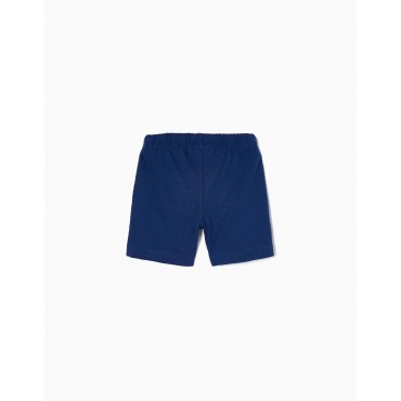 Set di due pantaloncini per neonato, in jersey 100% cotone. Include uno giallo e uno blu scuro. Vita elasticizzata e coulisse regolabile. Un set super pratico e comodo per più libertà e più divertimento. We Care: questo capo è realizzato al 100% con fibre di cotone sostenibili.