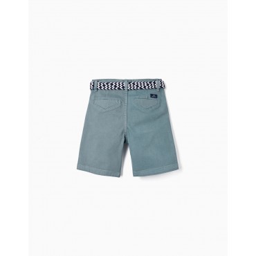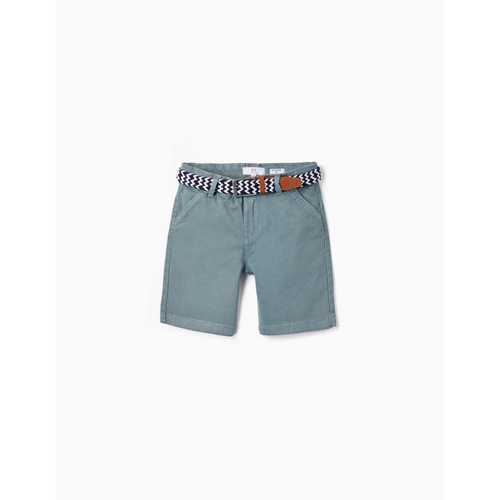 Pantaloncini grigi per ragazzi con cintura a contrasto bianca e blu scuro. Shorts in cotone con un tocco di elastan per maggiore comfort e libertà di movimento. Quattro tasche. I pantaloncini si chiudono sul davanti con un bottone a pressione e una cerniera. Big Me: si chiude con un bottone a pressione sotto un bottone decorativo fino alla taglia 8/9, per facilitare la vestizione e favorire l'autonomia del bambino.