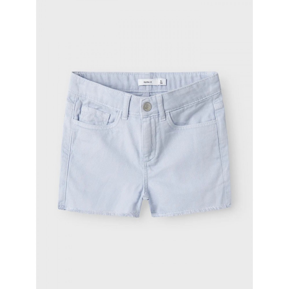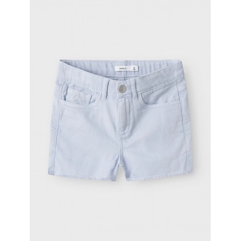 Shorts bambina Name it celeste dettaglio taglio vivo