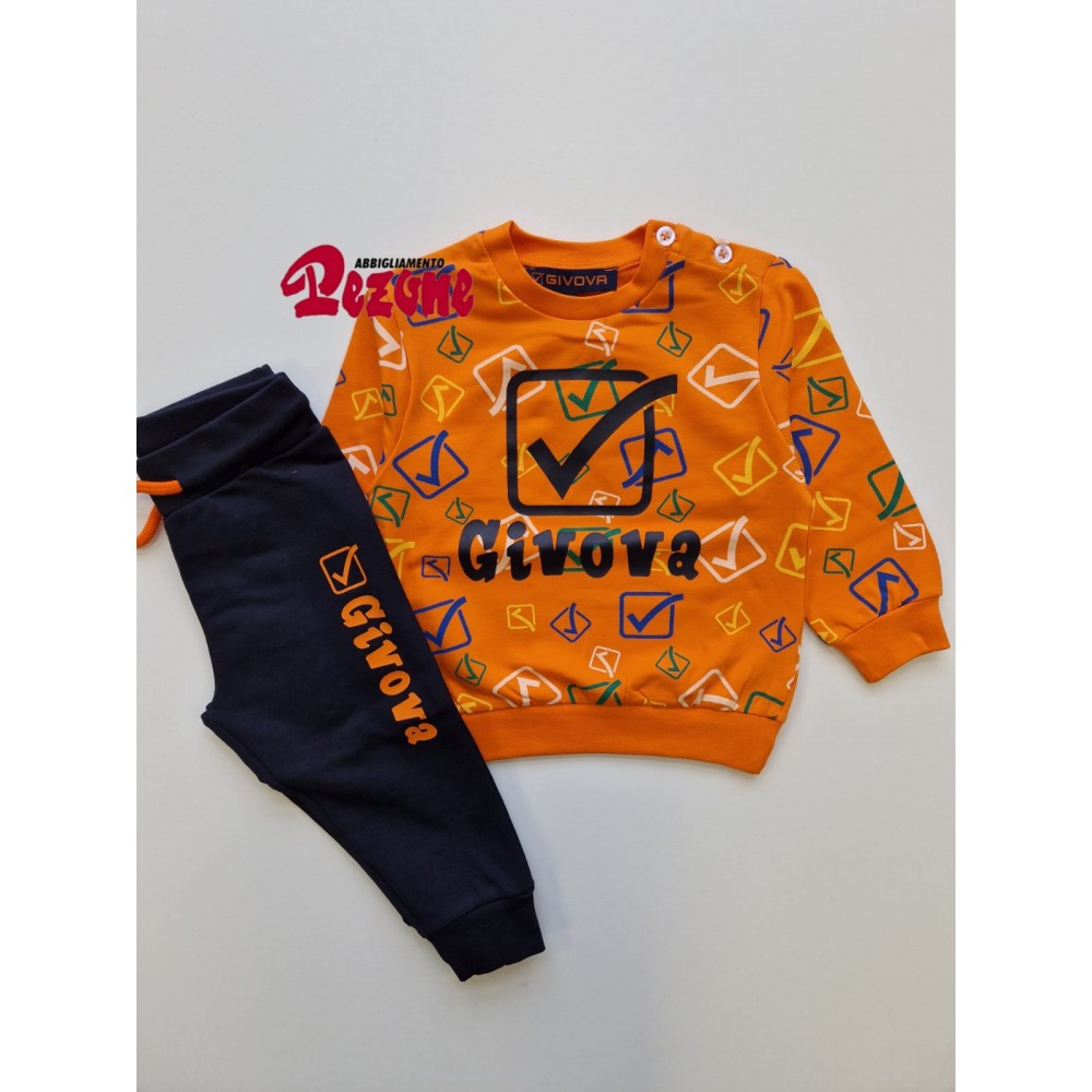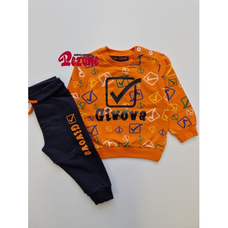 Tuta completa neonato Givova arancione fantasia loghi colorati