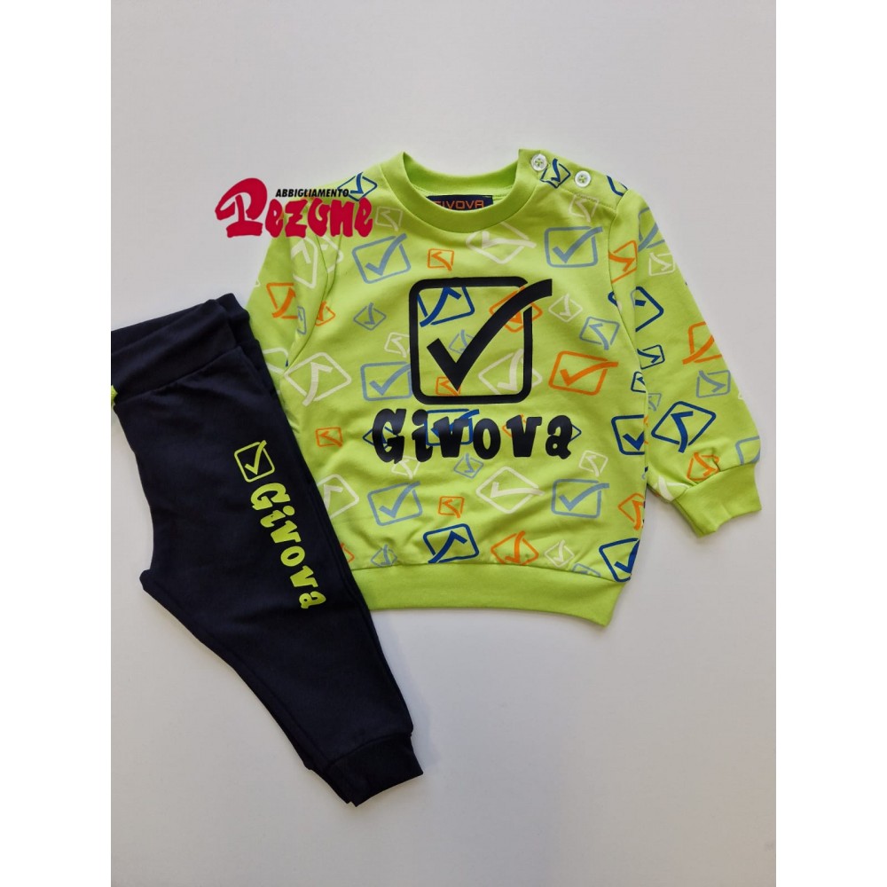 Tuta completa neonato Givova verde fantasia loghi colorati