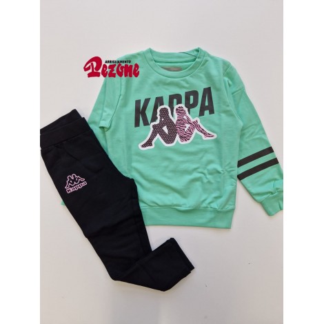Tuta completa bambina Kappa tiffany logo zebrato, felpa girocollo, leggins nero con logo, interno in cotone garzato