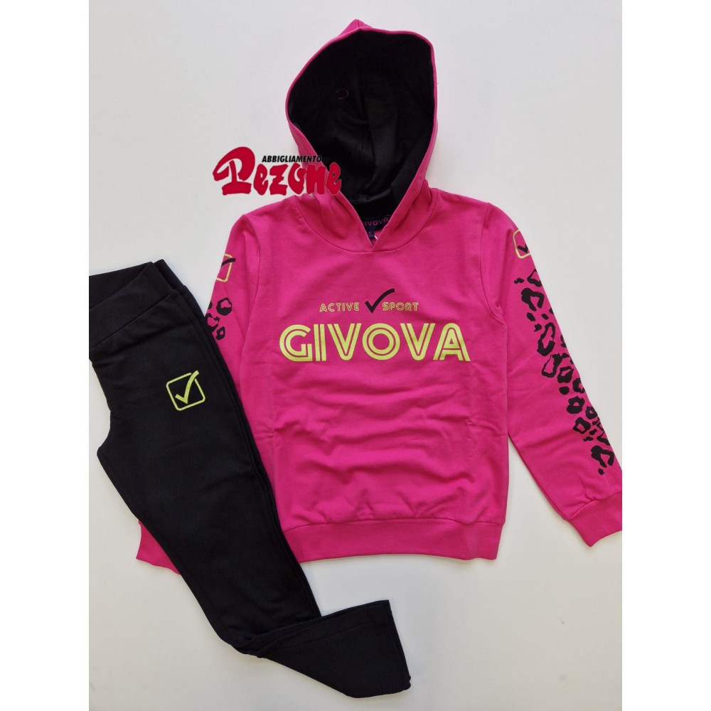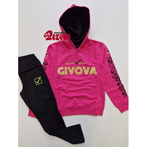 Tuta completa bambina/ragazza Givova fuxia logo glitterato