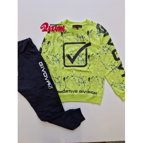 Tuta completa bambino/ragazzo Givova verde fluo macchie colorate