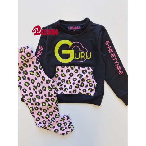 Tuta completa bambina Guru nera dettagli maculati rosa