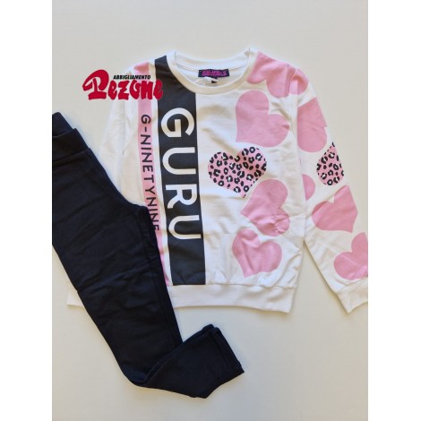 Tuta completa bambina/ragazza Guru bianca fantasia cuori