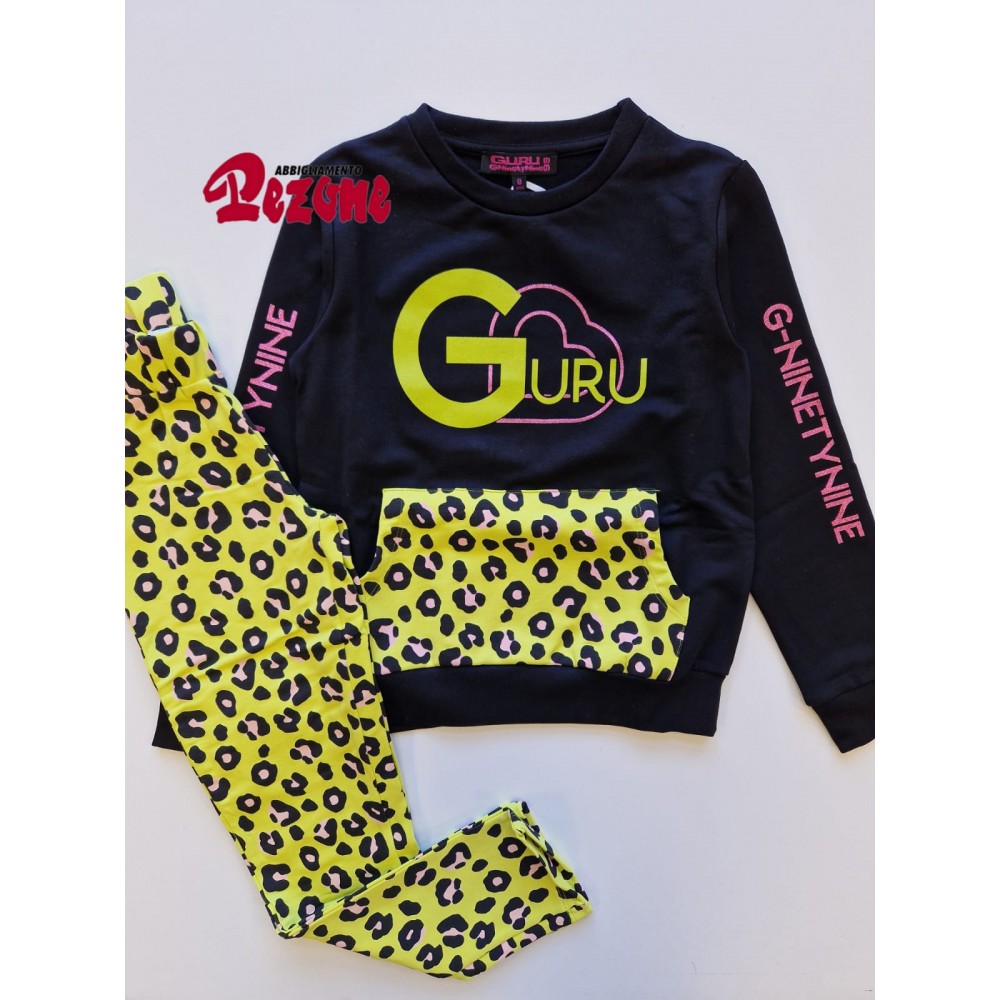 Tuta completa bambina/ragazza Guru nera fantasia maculata lime