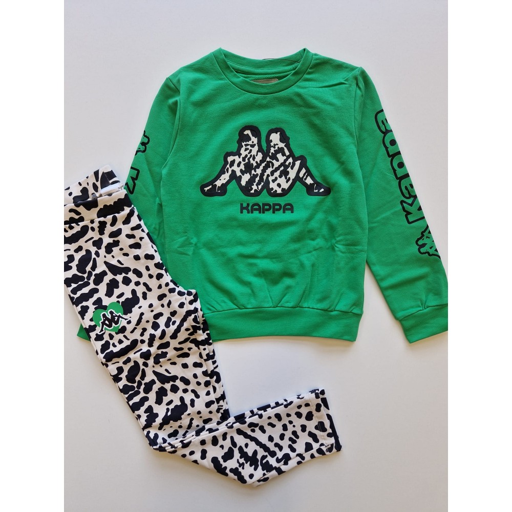 Tuta completa bambina/ragazza Kappa verde logo maculato, leggins maculato