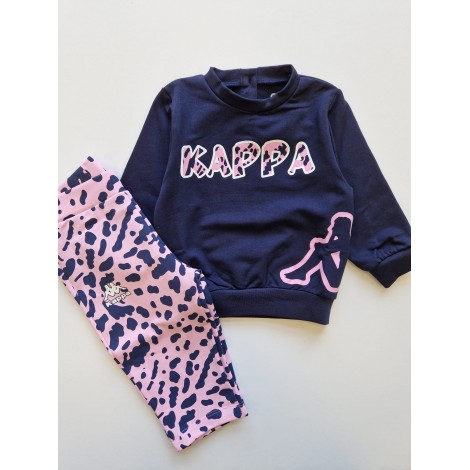Tuta completa neonata Kappa blu logo maculato, leggins maculato, interno in cotone garzato