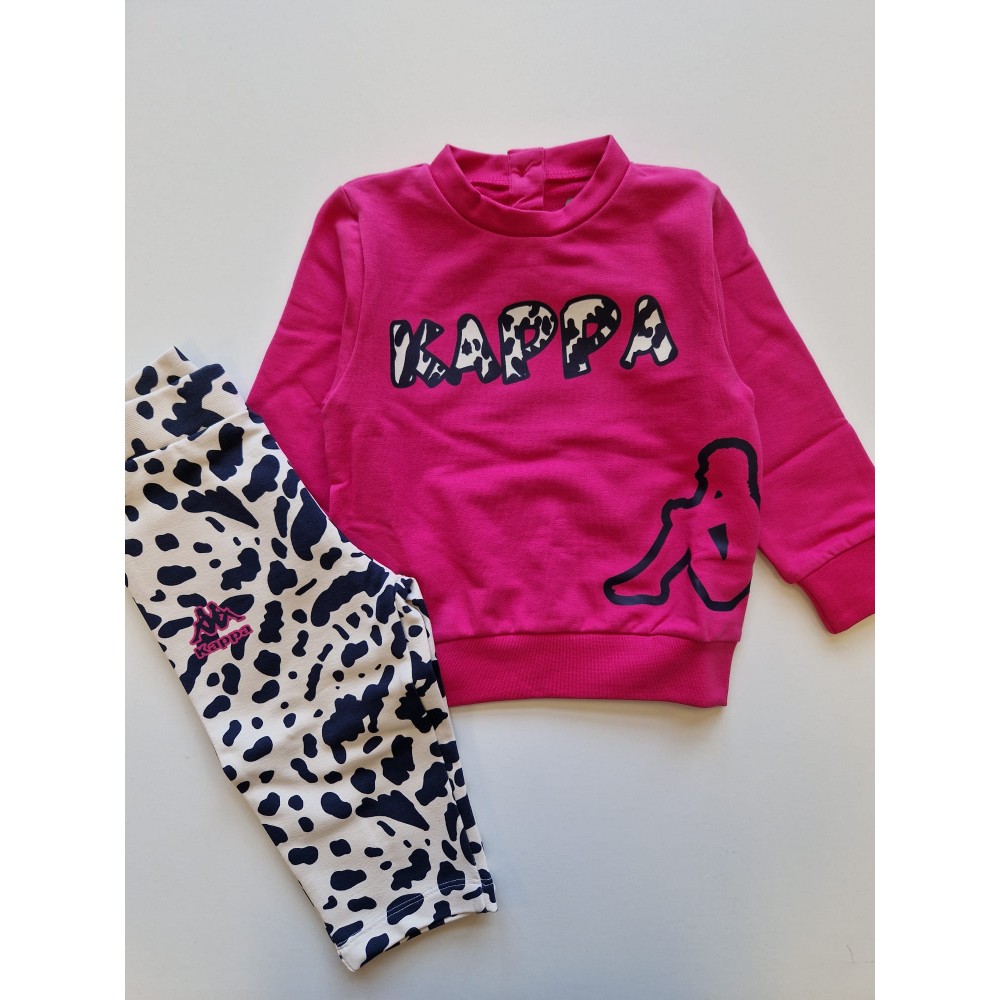 Tuta completa neonata Kappa fuxia logo maculato, leggins maculato, interno in cotone garzato
