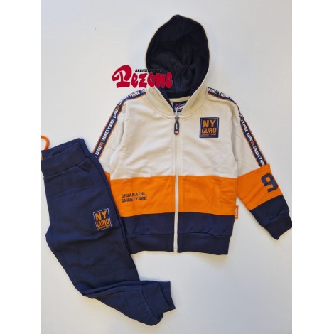 Tuta completa bambino Guru panna urban, felpa con zip e cappuccio, sottotuta blu, interno in cotone felpato