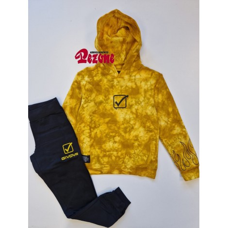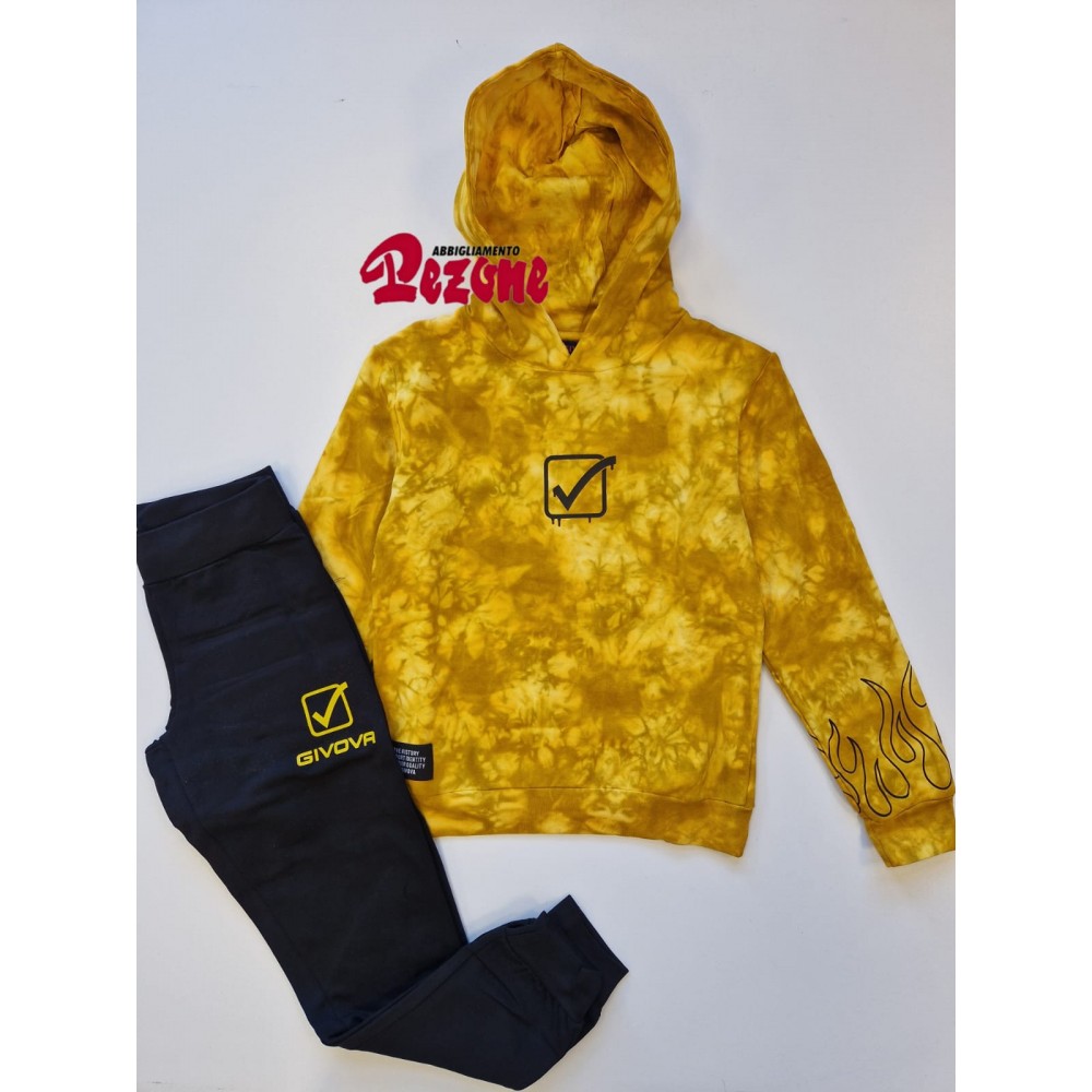 Tuta completa bambino/ragazzo Givova senape fantasia sfumata, sotottuta nero, interno in cotone felpato