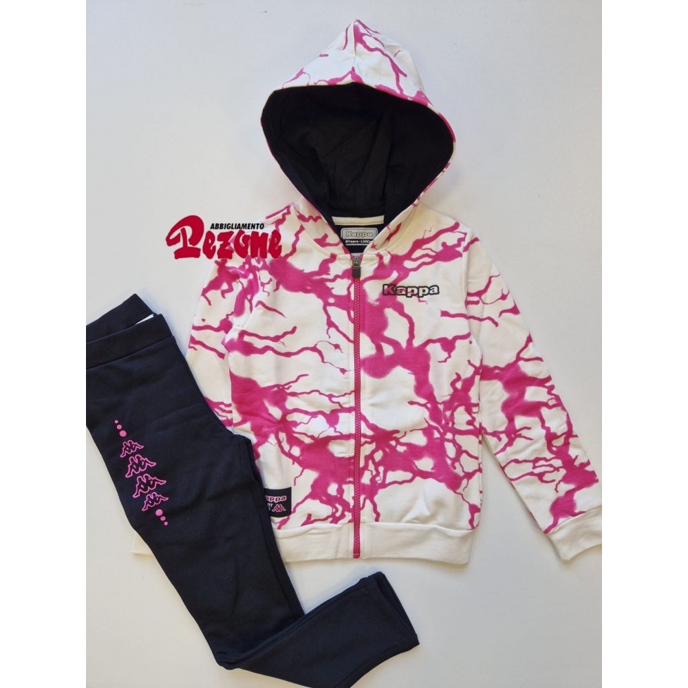 Tuta completa bambina/ragazza Kappa bianca crepe fuxia, leggisn nero, interno in cotone felpato