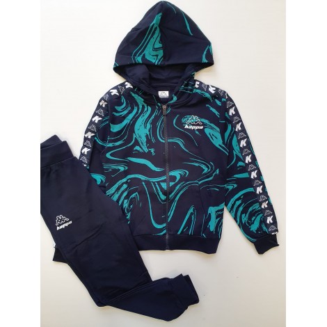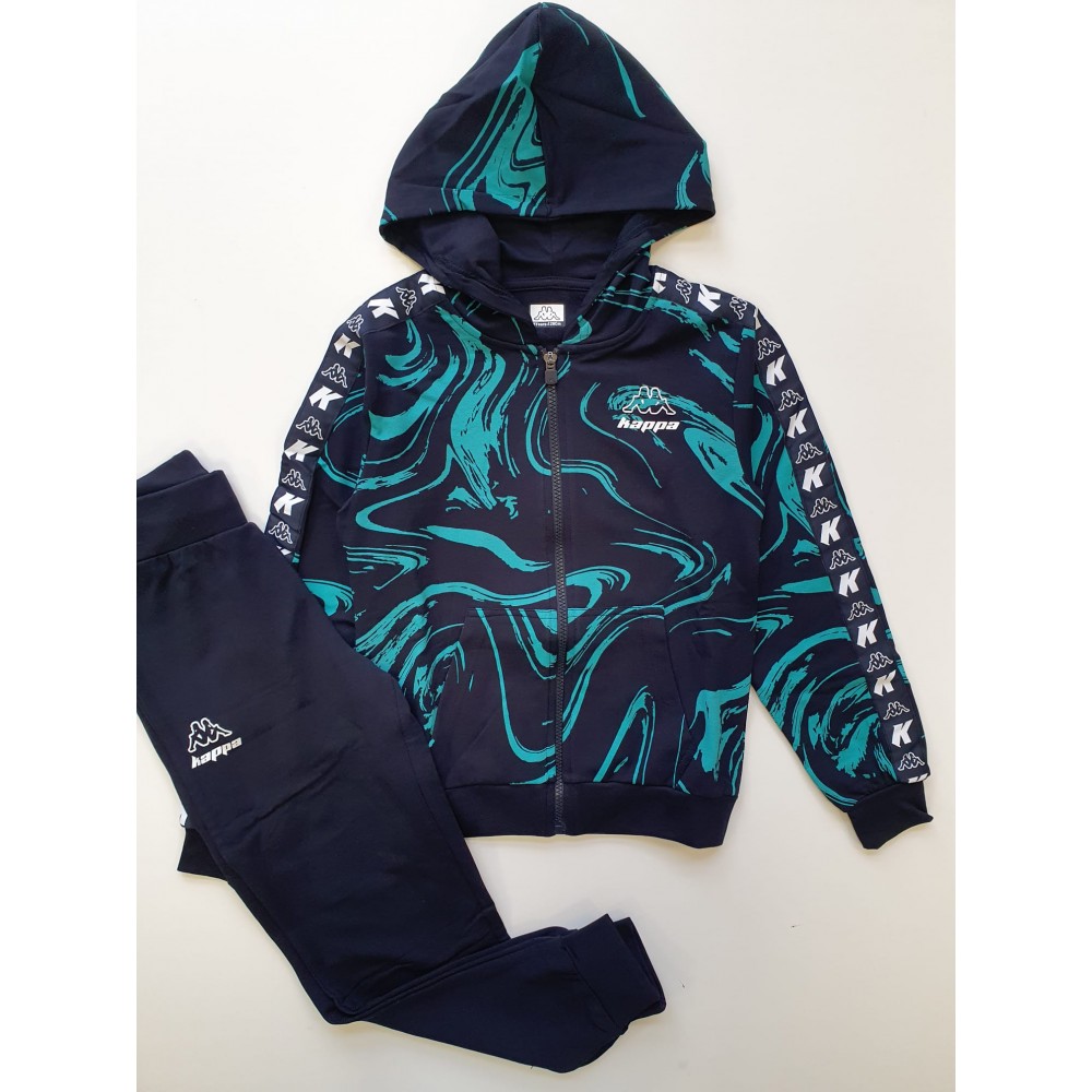 Tuta completa bambino/ragazzo Kappa blu dettagli verdi, interno in cotone garzato
