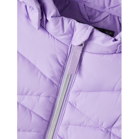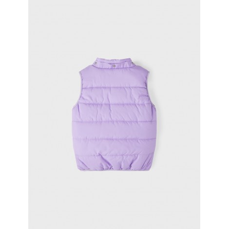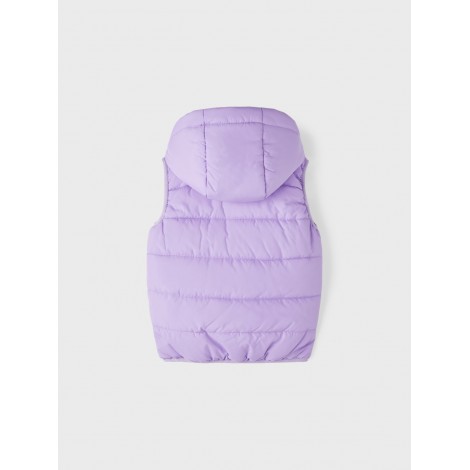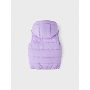 Piumino smanicato bambina Name it lilla, cappuccio removibile, foderato all'interno